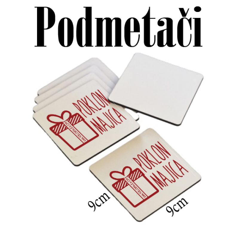 Podmetači za čaše krigle šolje od lesonita (ofarbani, beli, pravougaonog oblika). Pakovanje od 6kom + kutija. Kvalitetni podmetači za sve vrste čaša, šolja, krigli.... Dimenzija podmetača je 9x9cm. Cena je izražena za isti print na svih 6 podmetača. Bilo da je okolina ili glavni grad opštine Beograd,Novi Sad, Niš, Kragujevac, Subotica, Zrenjanin, Pančevo, Čačak, Novi Pazar, Kraljevo, Smederevo, Leskovac, Valjevo, Užice, Vranje, Šabac, Sombor poštarina je uvek ista Postexpress službom.